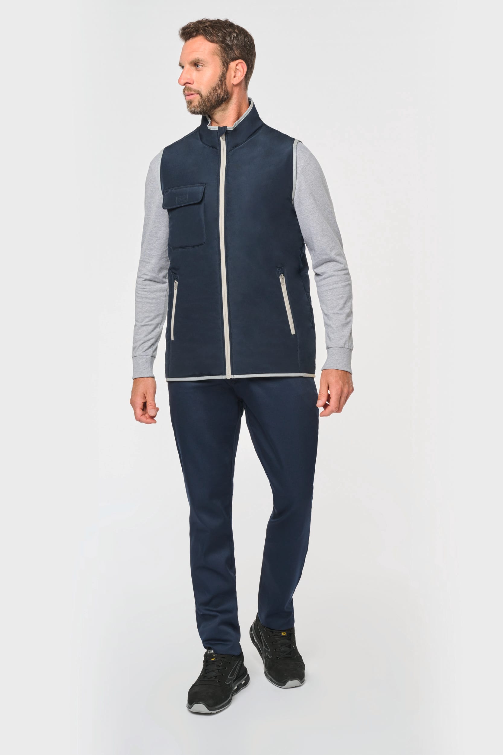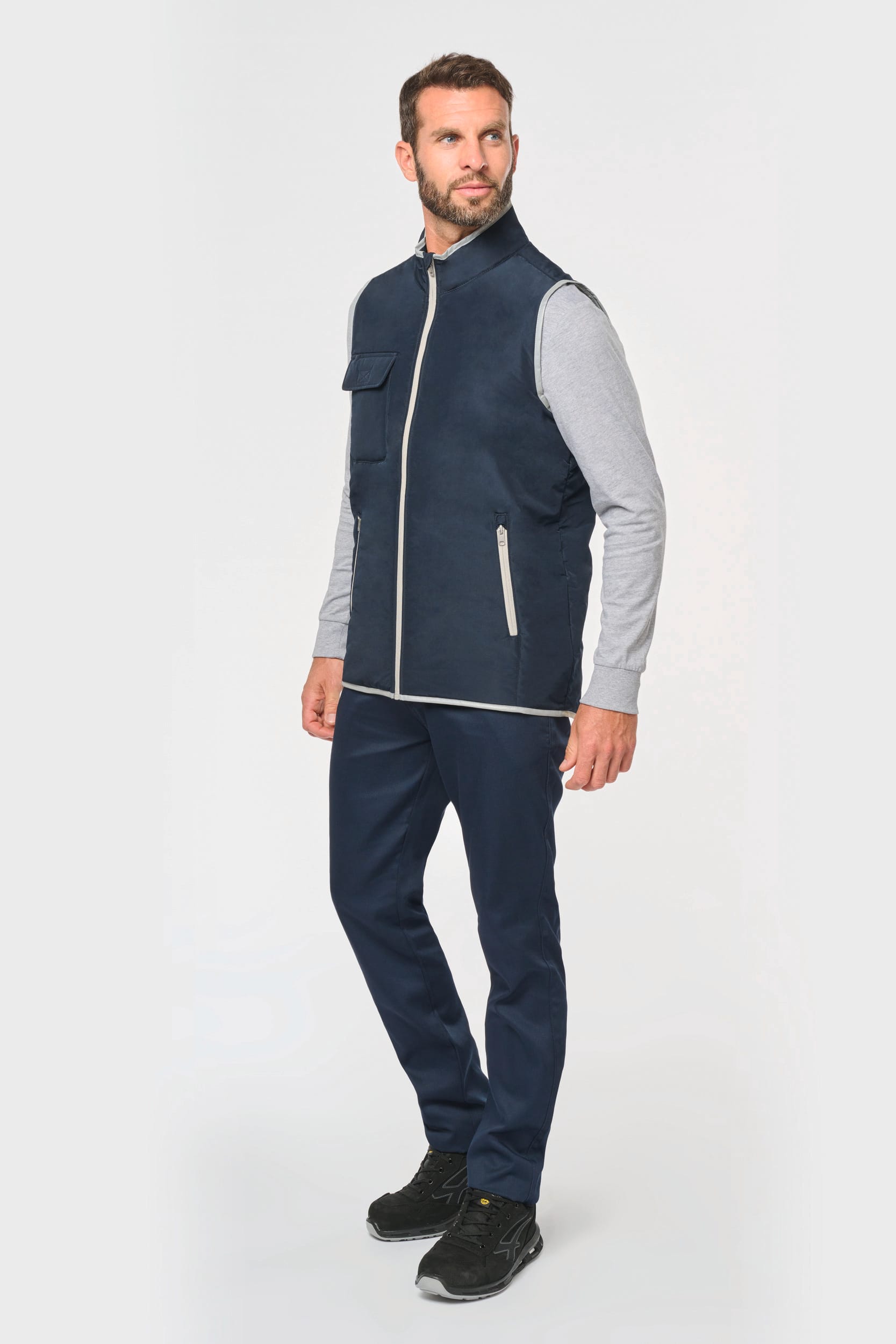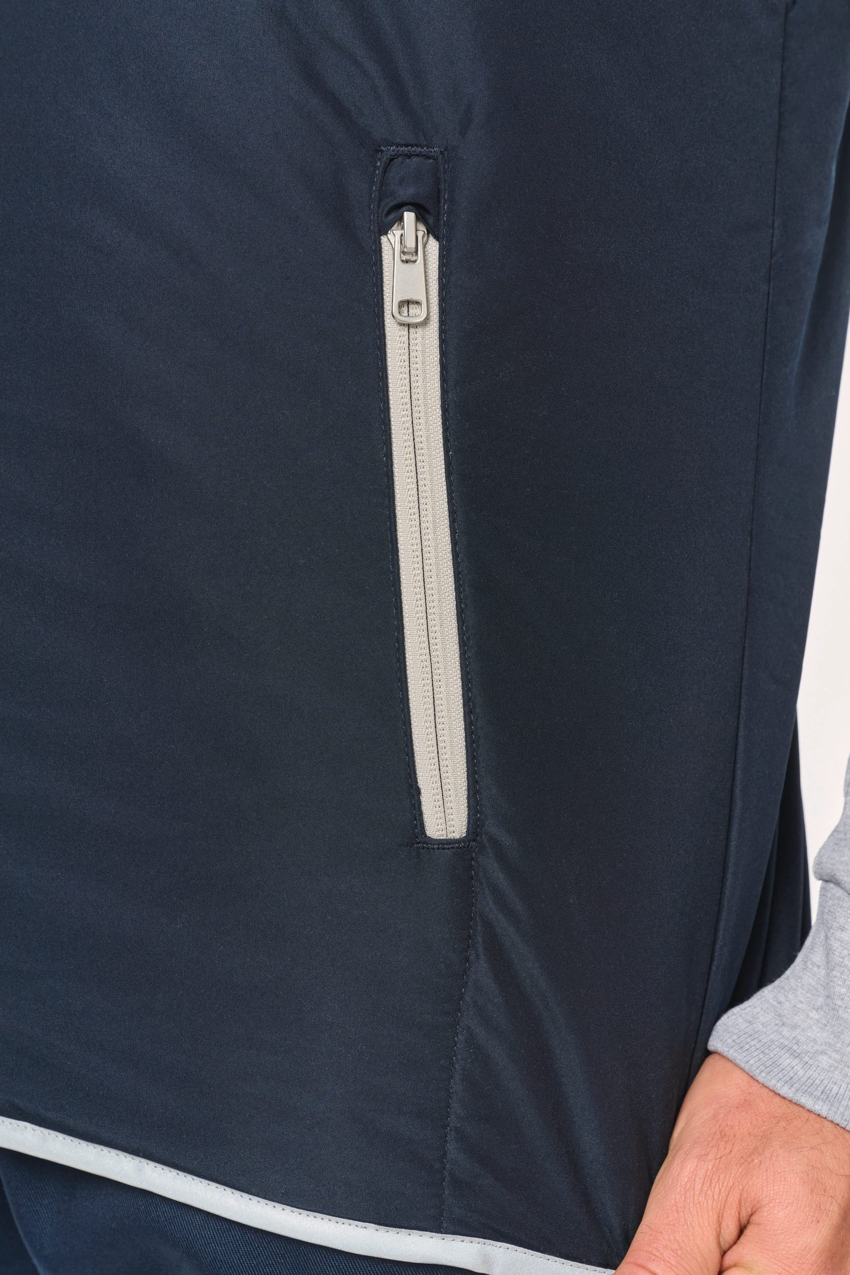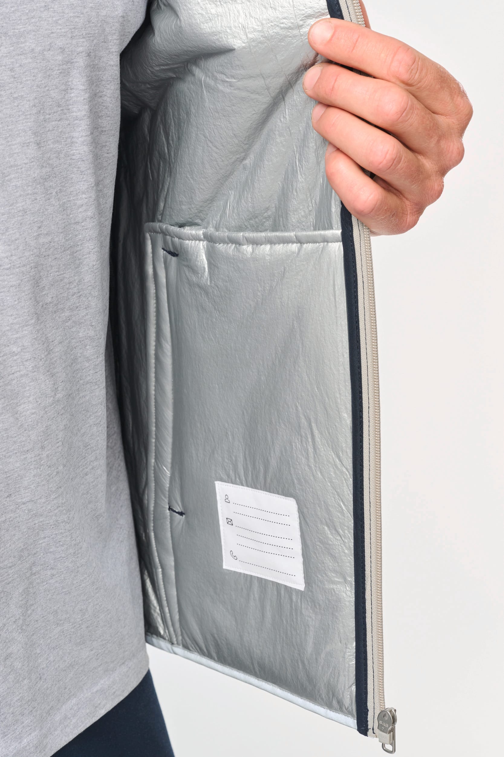 100% polyester. 4 couches : extérieur Taffetas 240T. Polyfil 60 g. Membrane PU argentée à l’intérieur. Performance technique : imperméable 5000 mm et coupe-vent 5000. Résistance thermique (Norme ISO 11092-2014) RCT : 0.138 m² k/w. Coupe droite. Fermeture zippée en nylon. 2 poches zippées sur les côtés. 1 poche poitrine avec rabat et emplacement stylo, couture de renfort, fermeture par bande auto-agrippante. Biais tissu argenté sur bordure col, emmanchures et bas de vêtement. 2 grandes poches intérieur bas. Étiquette nom à l’intérieur du vêtement. Lien d’accrochage dans le col. Dos rallongé. Etiquette de marque Tear Away pour faciliter la personnalisation.