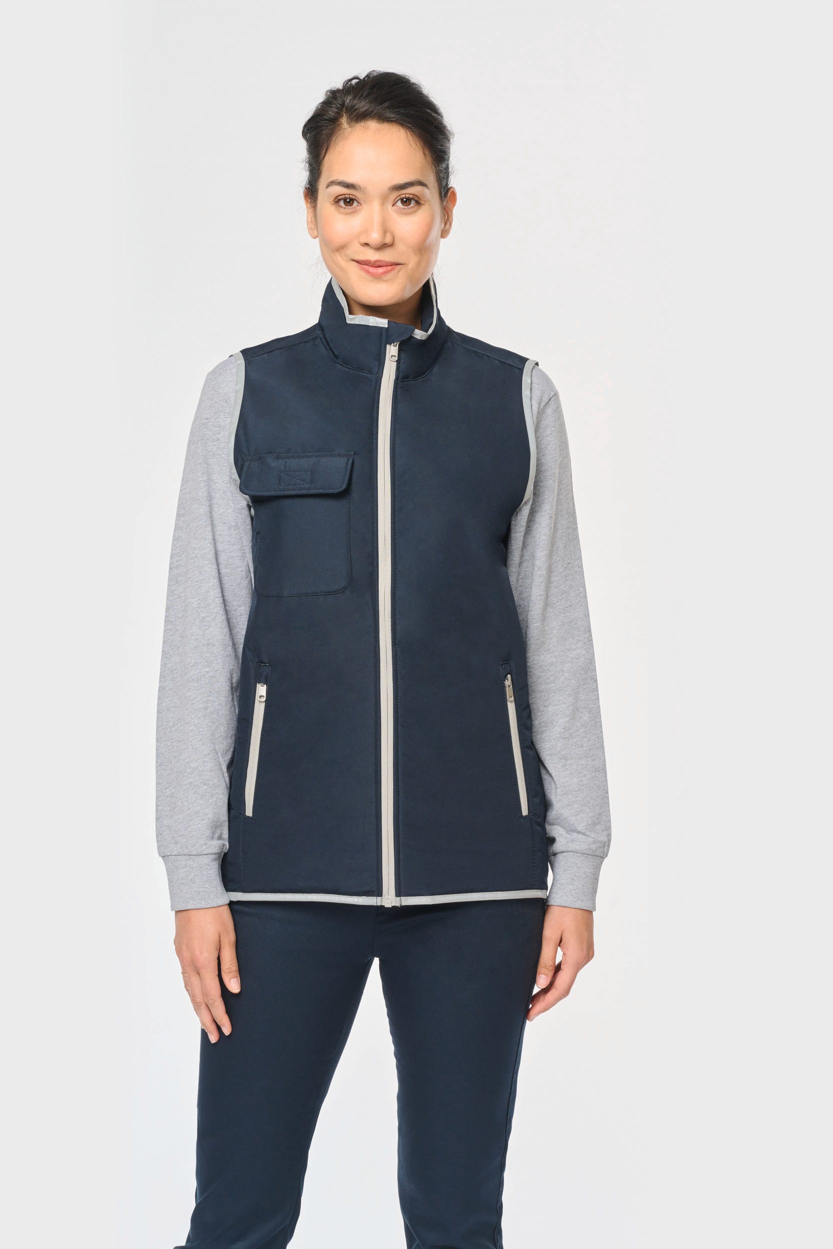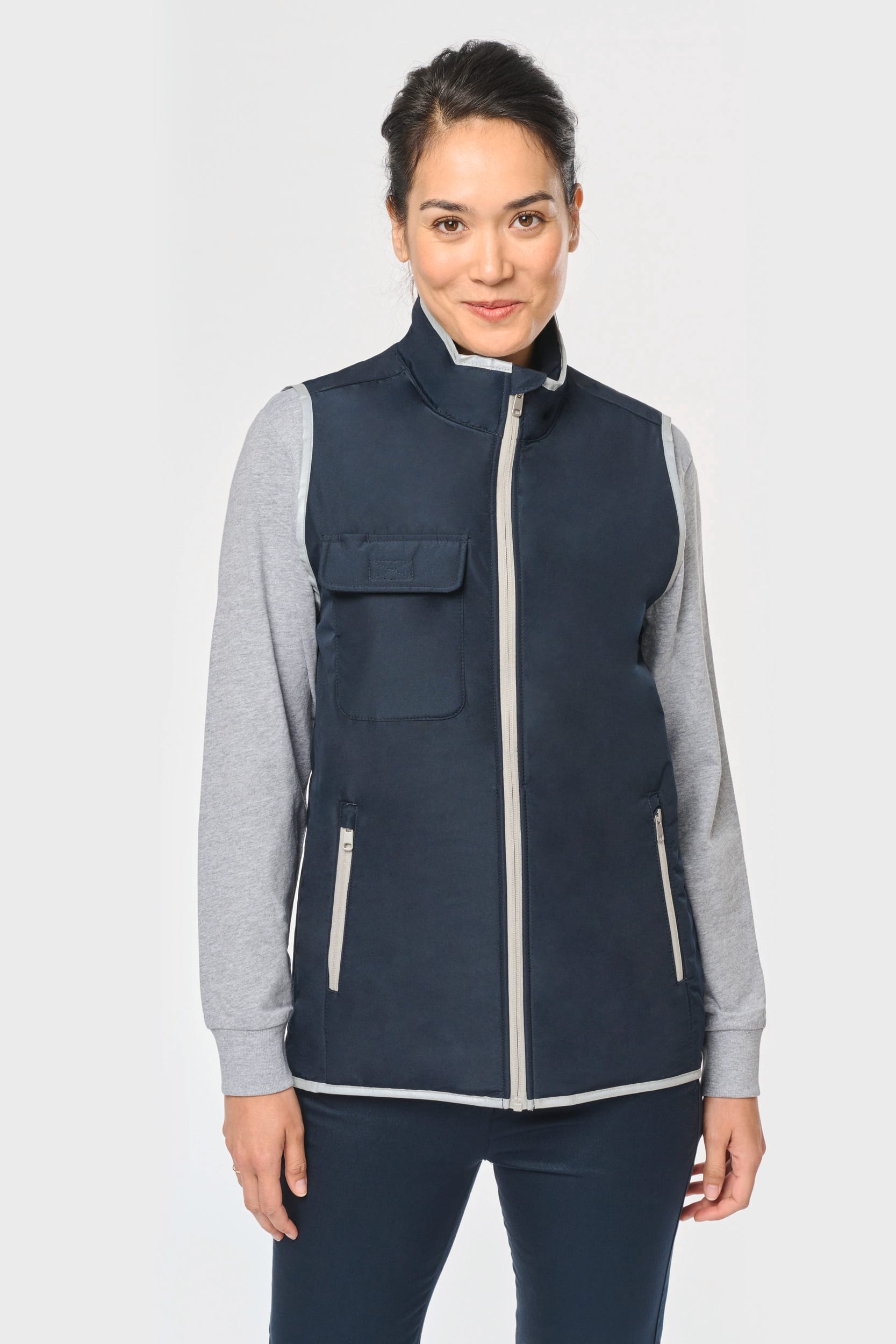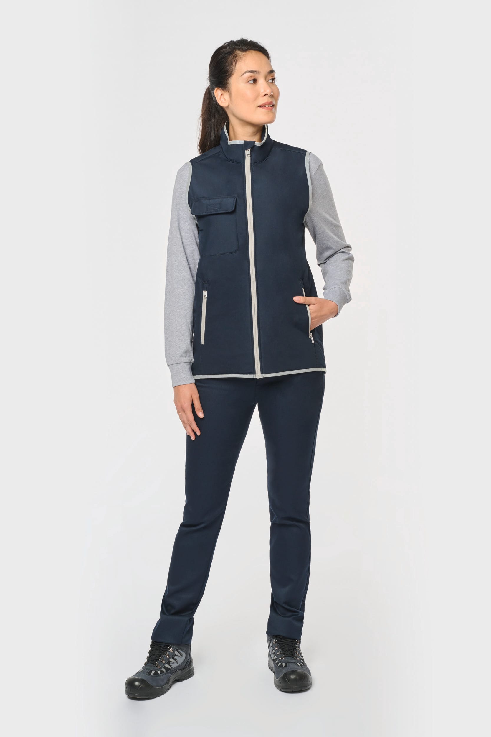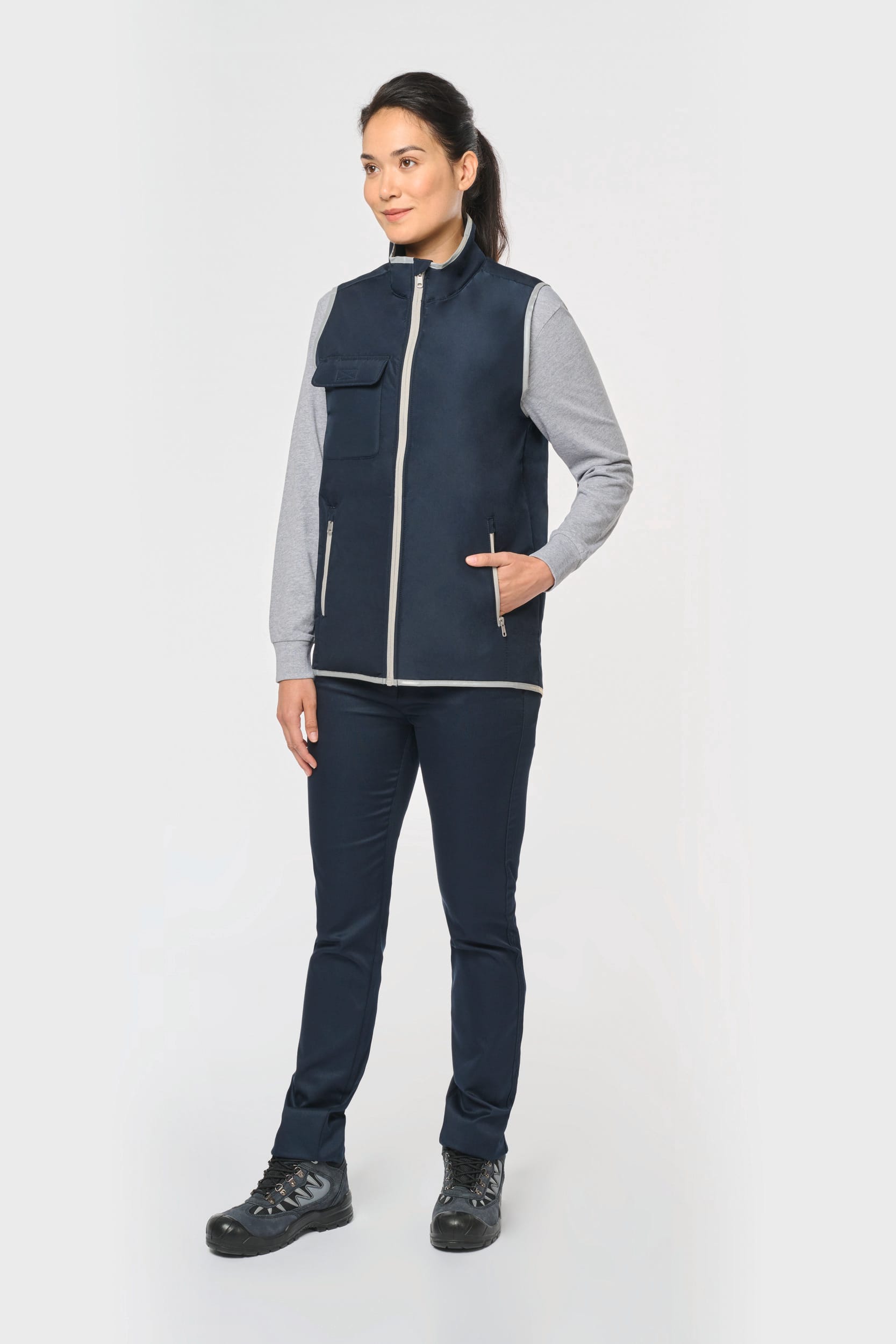 100% polyester. 4 couches : extérieur Taffetas 240T. Polyfil 60 g. Membrane PU argentée à l’intérieur. Performance technique : imperméable 5000 mm et coupe-vent 5000. Résistance thermique (Norme ISO 11092-2014) RCT : 0.138 m² k/w. Coupe droite. Fermeture zippée en nylon. 2 poches zippées sur les côtés. 1 poche poitrine avec rabat et emplacement stylo, couture de renfort, fermeture par bande auto-agrippante. Biais tissu argenté sur bordure col, emmanchures et bas de vêtement. 2 grandes poches intérieur bas. Étiquette nom à l’intérieur du vêtement. Lien d’accrochage dans le col. Dos rallongé. Etiquette de marque Tear Away pour faciliter la personnalisation.
