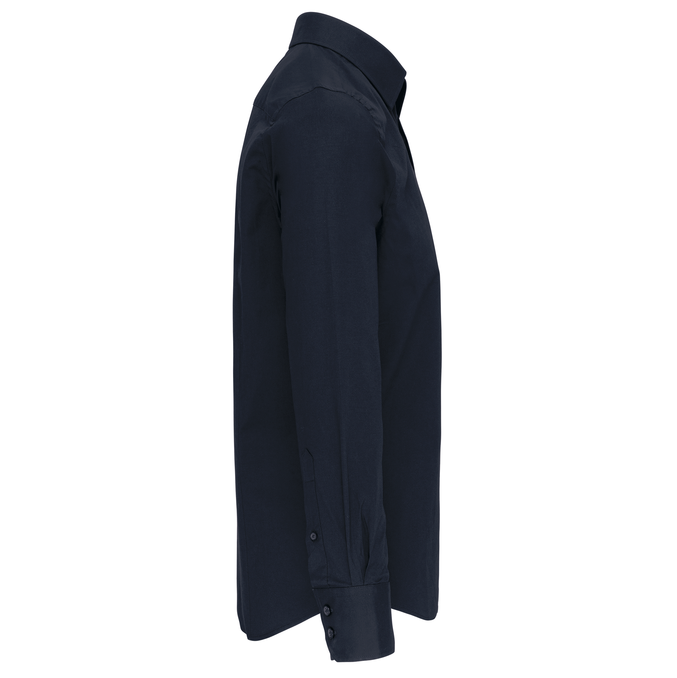 97% coton / 3% élasthanne. Aisance et ajustement idéal de par son côté stretch. Pointe de col baleinée. Boutons ton sur ton. Empiècement dos double. Pinces taille dos. Finition coutures rabattues. Poignet à angles abattus à 2 boutons avec patte de manche capucin boutonnée. 2 boutons de rappel. Bas arrondi.