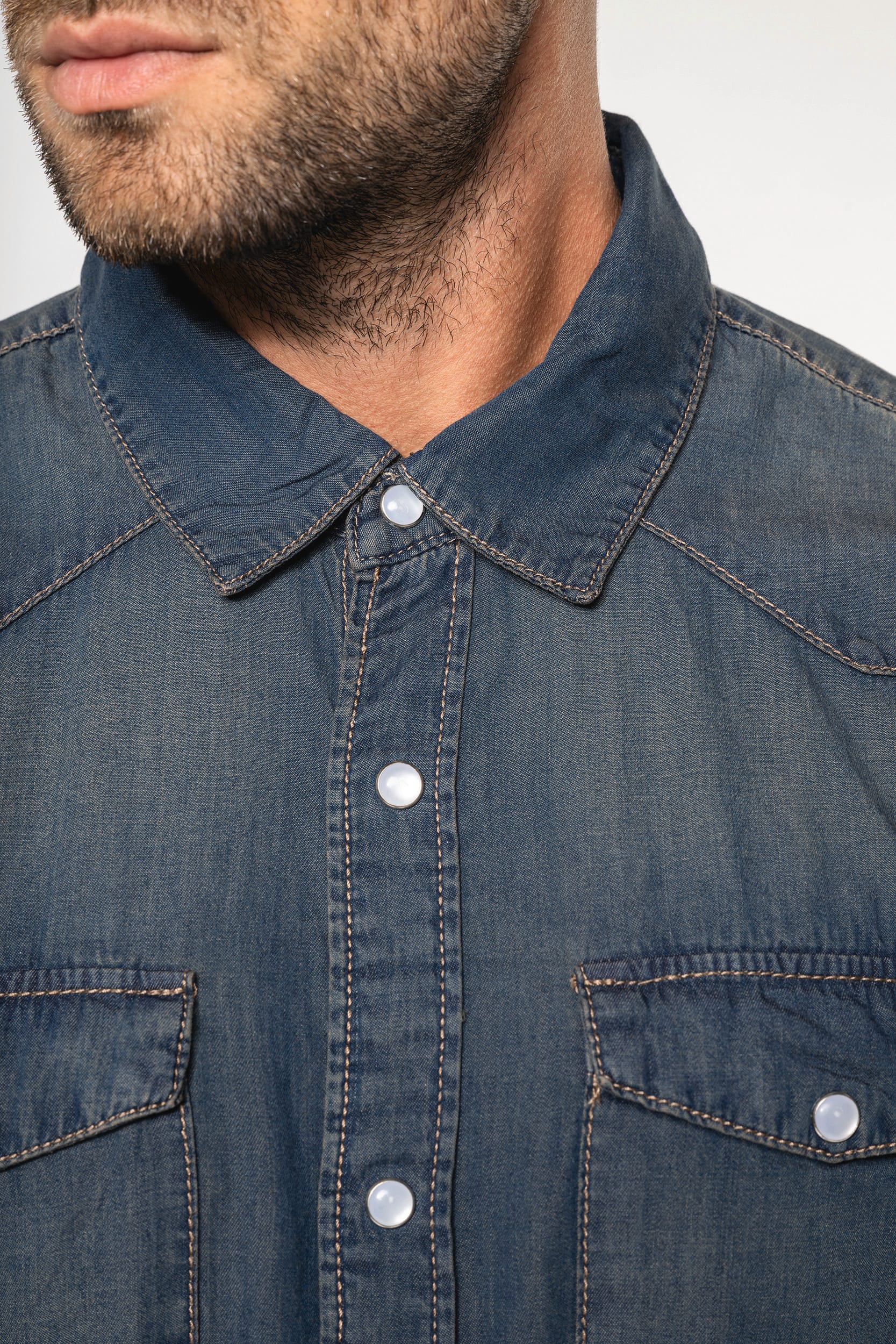 100% coton. Chemise lavée aux enzymes. Coupe droite. Boutons pression fantaisie. 2 poches poitrine avec rabat et bouton pression. Empiècements dos et devant. Bas de manches avec poignets et boutons pression. Ce produit a subi un traitement spécial et présente un aspect volontairement vieilli. Ce procédé de fabrication implique des variations de couleurs d’un produit à l’autre et rend chaque pièce unique.