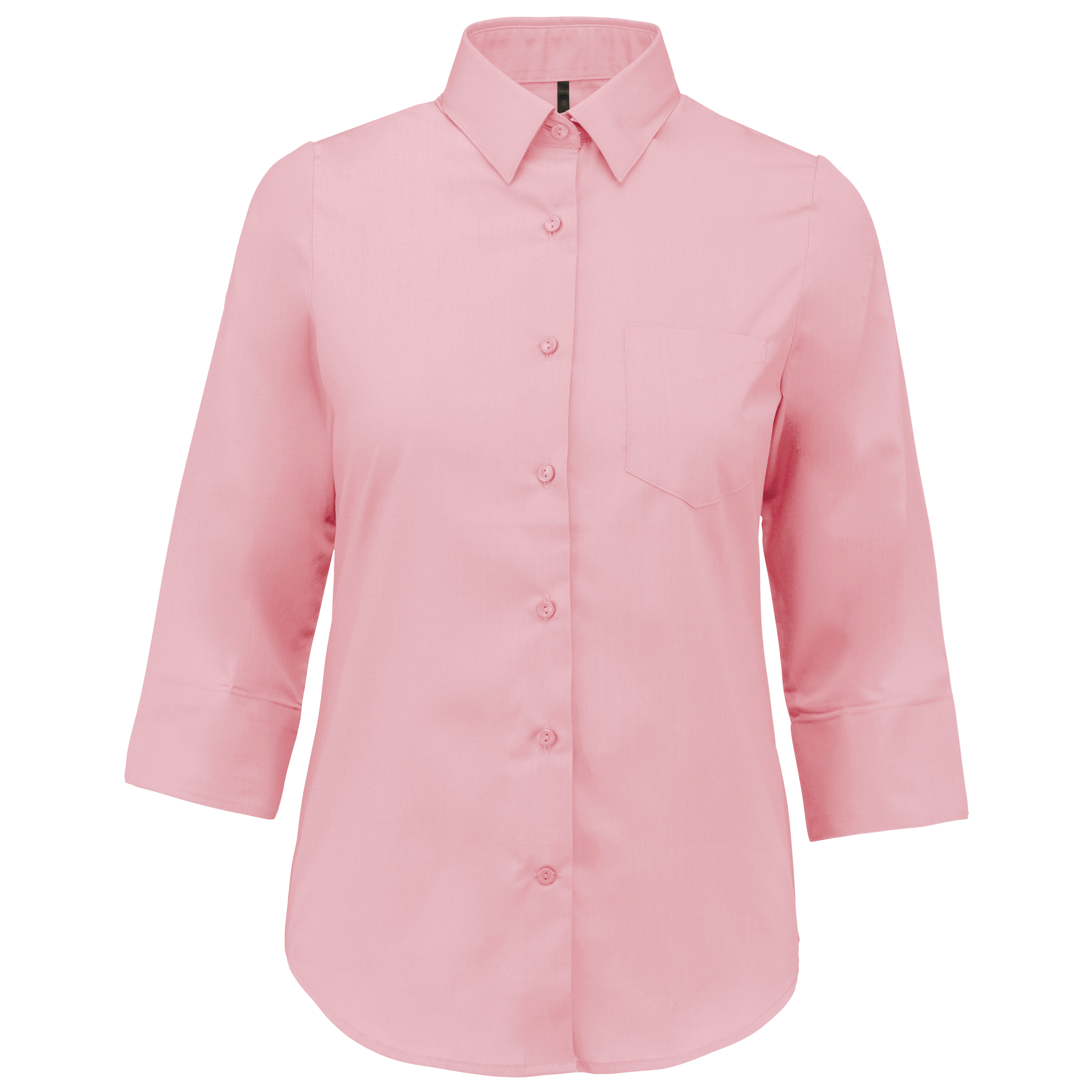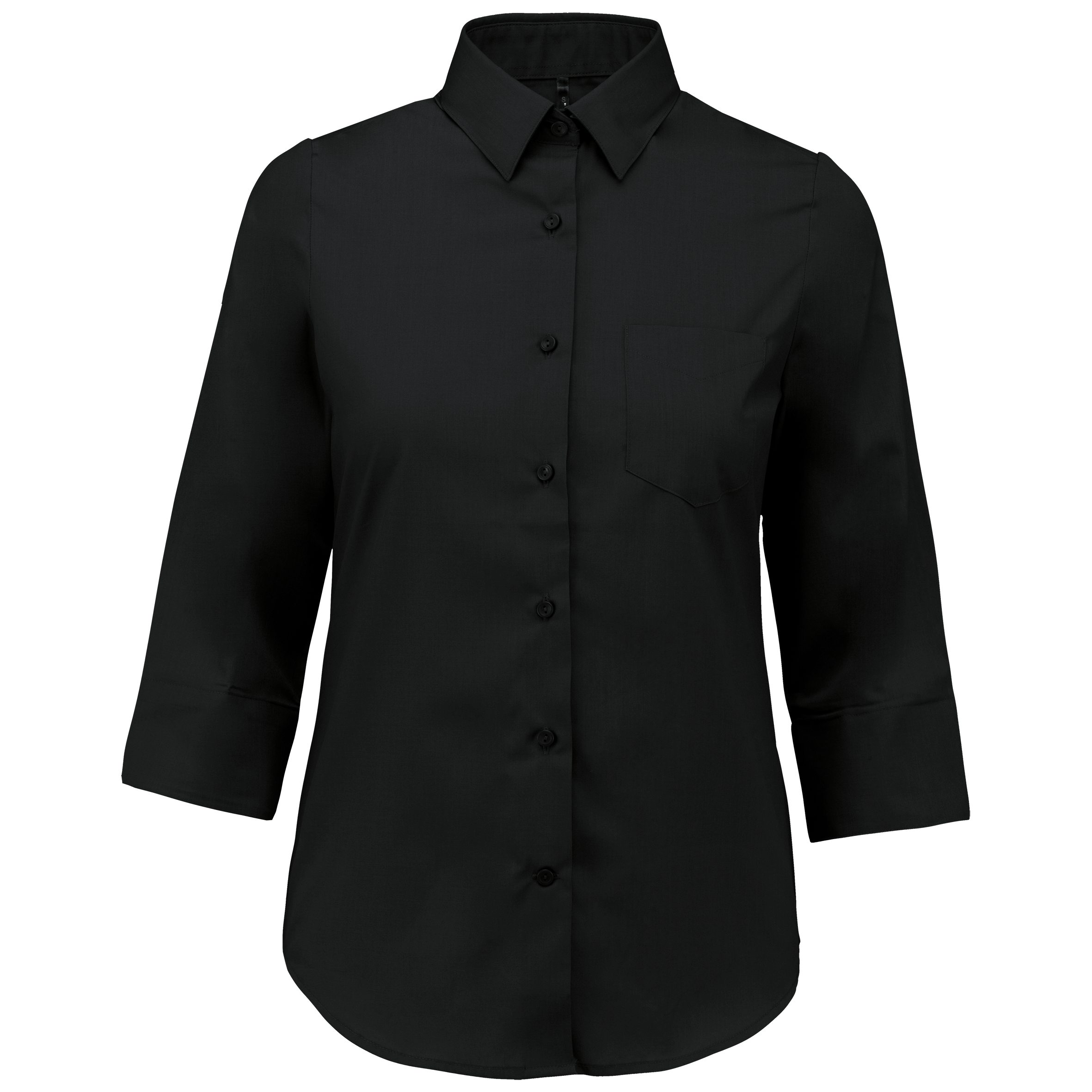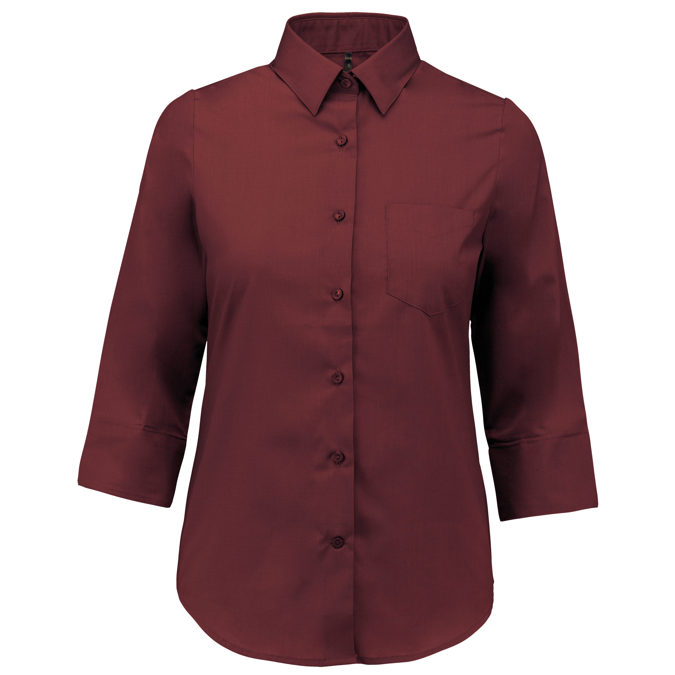 65% polyester / 35% coton. Tissu popeline. Entretien facile. Col non boutonné. Boutons ton sur ton. Poche poitrine côté gauche en V. 1 bouton de rappel. Bas arrondi.