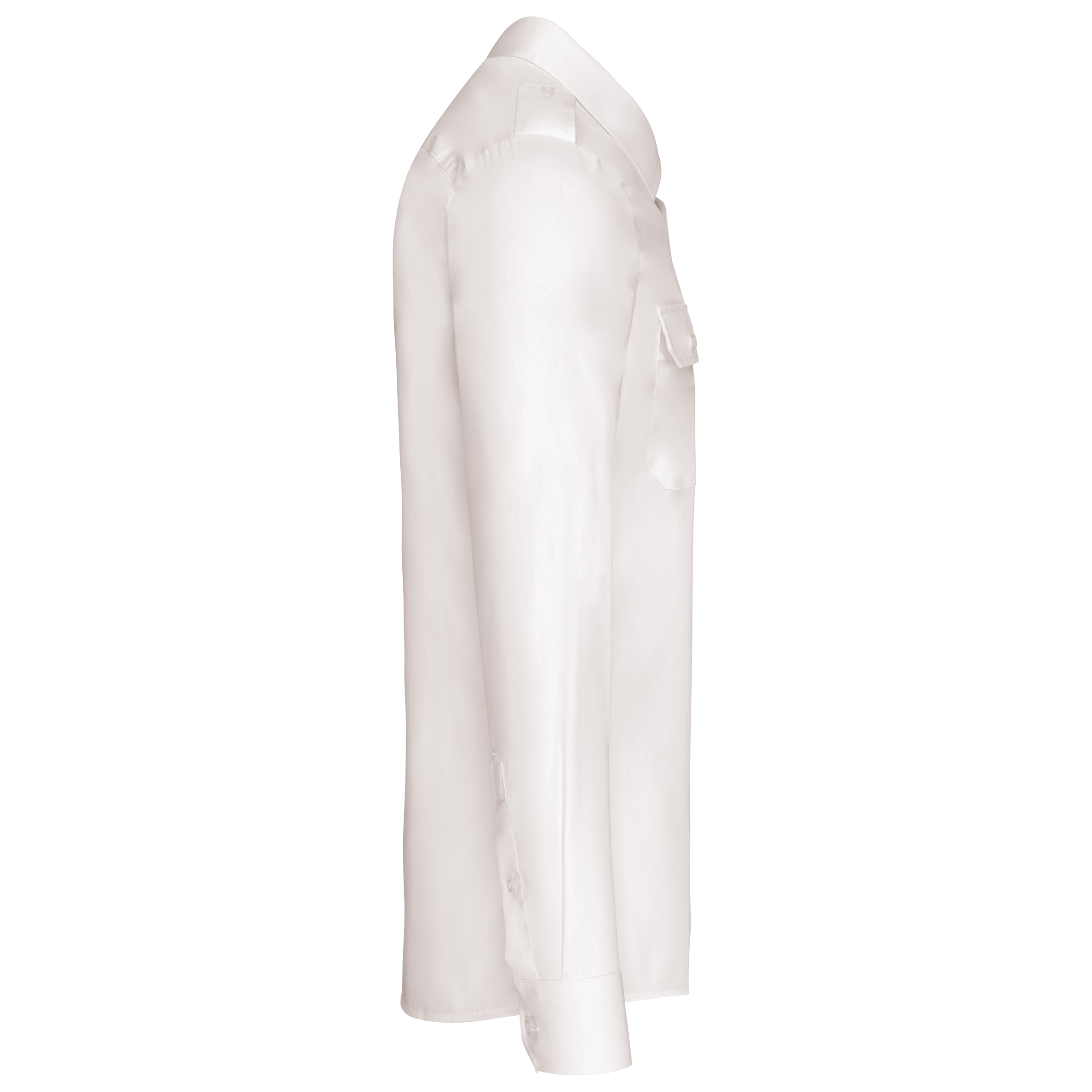 65% polyester / 35% coton. Tissu popeline. Entretien facile (traitement Easy Care). Boutons ton sur ton. 2 poches poitrine à rabat dont une avec emplacement stylo côté coeur. Plis d’aisance au dos. Patte boutonnée sur les épaules pour la pose de galons (galons non fournis). Poignets boutonnés réglables.