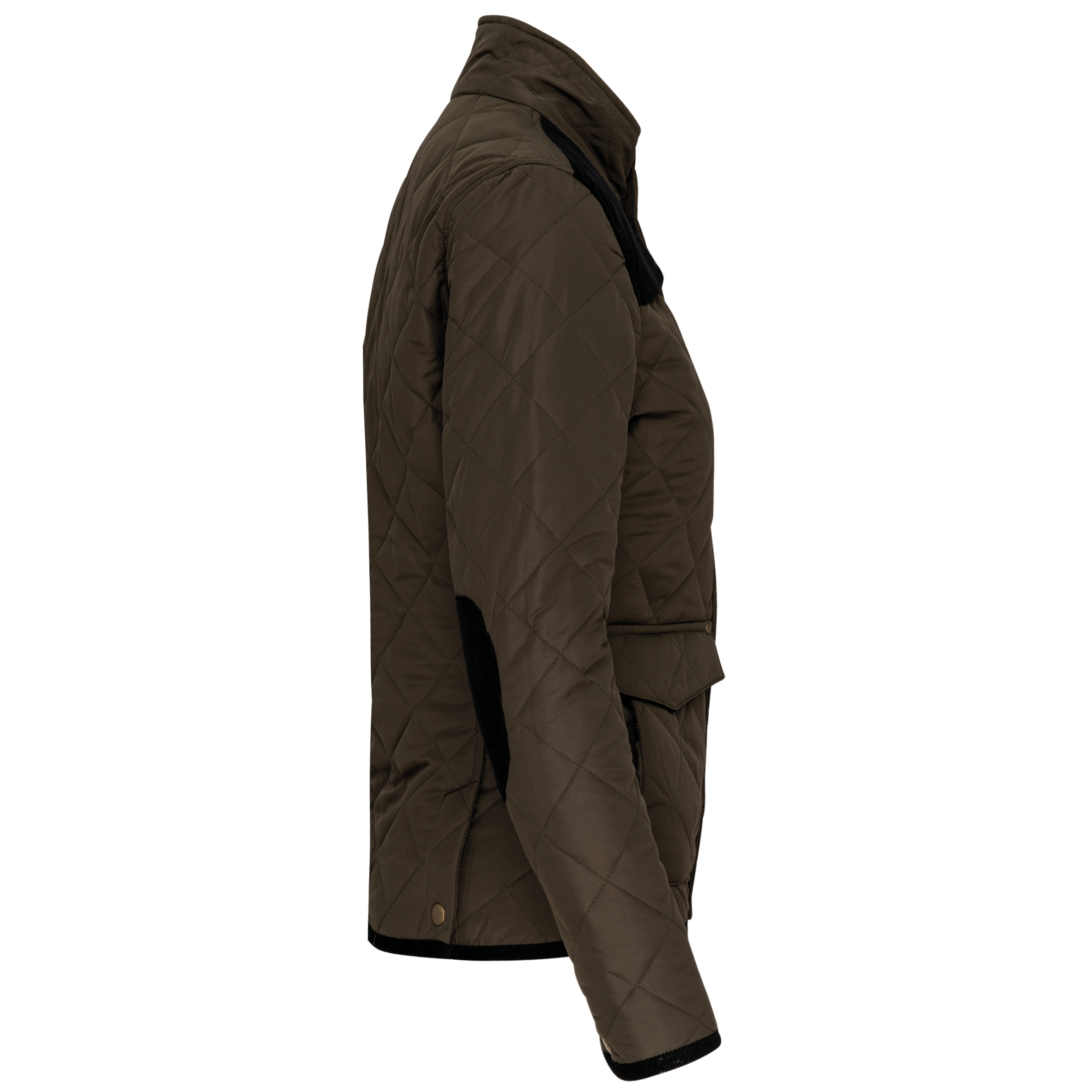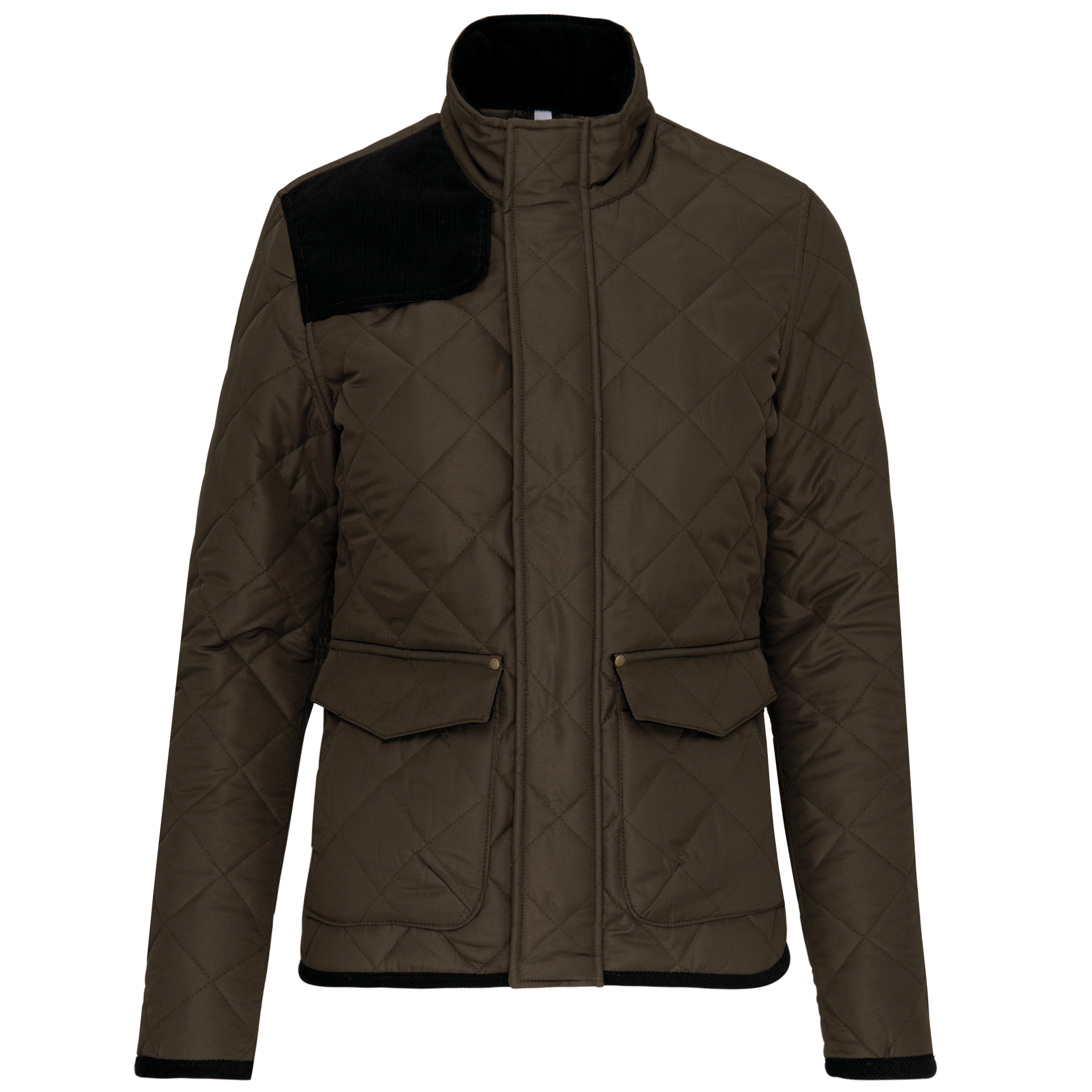 Extérieur : 100% polyester pongé. Intérieur : 100% polyester taffetas. Fermeture zippée cachée par patte pressionnée. 2 double poches devant avec rabat pressionné. 1 poche intérieure. Empiècement pressionné sur l’épaule. Finitions bas de manches et de vêtement, coudières, intérieur col et dessous du rabat de poche en velours côtelé. 2 fentes d’aisance pressionnées au bas du dos. Boutons pression au poignet.